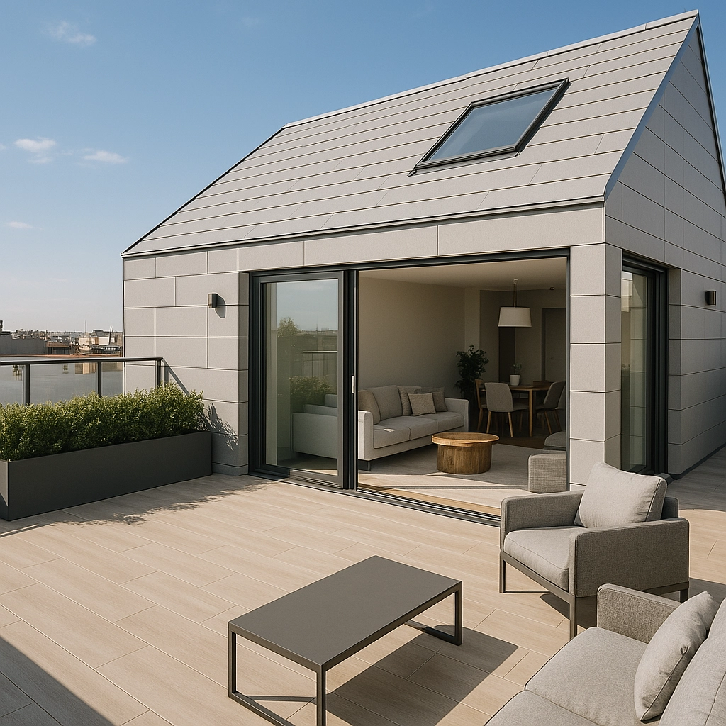Como colofón del edificio, se incorporan dos áticos tipo dúplex de 90 m², que combinan amplitud, luminosidad y vistas privilegiadas sobre la ciudad. Estas viviendas premium están pensadas para quienes desean un espacio más exclusivo sin renunciar a las ventajas del modelo cooperativo.
